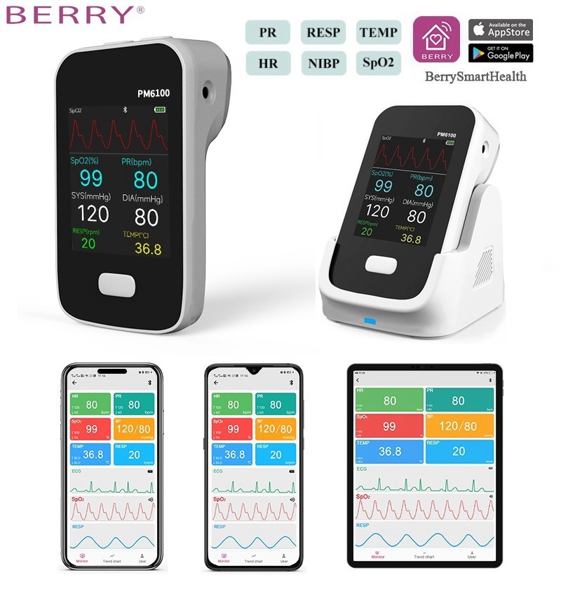 Wieloparametrowy monitor pacjenta - Nazwa marki: , numer modelu: PM6100, miejsce pochodzenia: Shanghai, certyfikat CE, minimalna ilość zamówienia: 100, cena: 150-200USD, szczegóły opakowania: pudełko,Czas dostawy: 10 dni, Warunki płatności: TT, Możliwość dostaw: 1000 sztuk/miesiąc, Transfer danych: Transfer danych do Bluetooth, Język: angielski, Waga: 1,5 kg, Rozmiar: Kompaktny i lekki, APP: Smart Health.